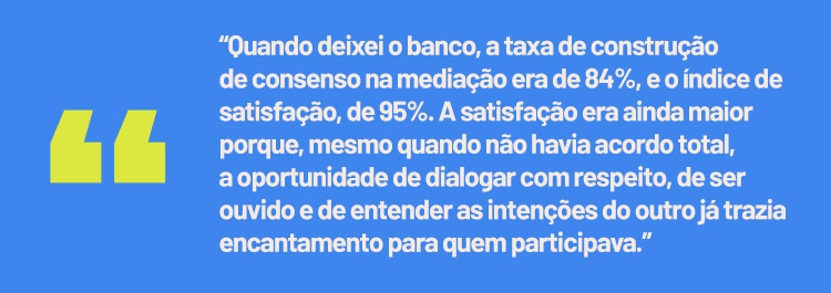“Foi a mediação que me ensinou que é nas conversas que tudo acontece. É no diálogo que construímos convivência, entendimento e soluções sustentáveis”, afirma.